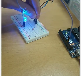 LED 썸네일형 리스트형 [아두이노] 조도센서를 활용하여 아날로그 값 받아오기 이번 포스팅은 저번 포스팅에 이어 조도센서의 신호를 아날로그 값으로 받아오는 것입니다. 가변 저항이 위치하던 자리에 일반 저항과 조도센서만 부착하였습니다. 밑에 오류메세지는 무시하셔도 됩니다. 제가 포트 인식이 갑자기 안되더라구요.. ㅎㅎ; 정상적으로 연결하게 되면 이런 값이 뜹니다. 밝으면 값이 낮아지고 어두우면 값이 커집니다. 휴대폰 후레시를 통한 값 변화 측정도 한번 해보세요! 다음으로는 조도센서를 응용하여 LED 가로등을 만들어 봅시다. if문을 활용하여 일정 어둡기 이상이면 LED가 켜지게 프로그램 했습니다. 불이 잘 들어오는 것을 보실 수 있습니다 ^_ ^ 이 글은 인제대학교 의용공학부 네트워크 팀 '11 신윤호가 작성하였습니다. http://brian-s.tistory.com/60 더보기 [아두이노] 아두이노로 불을 켜볼까요? 오늘은 아두이노의 아주 간단한 예제로 불 켜보는 예제를 다루도록 하겠습니다. 먼저 아두이노를 실행하면 이런 창이 뜹니다. 개발 코드를 입력하고 디버깅 및 업로드 할 수 있는 창입니다. 먼저 알아두셔야 할 게 있는데요, 많은 프로그래밍 언어가 그렇듯 코드를 위에서 순차적으로 읽어들이는데 아두이노 또한 이 방식을 택하고 있습니다. 따라서 미리 필요한 내용을 setup 해주셔야 합니다. 그리고 밑의 loop 함수 안에서 입력된 내용을 계속 반복 수행 하신다고 이해를 하시면 되겠습니다. 저는 밑의 킷으로 공부를 진행합니다. 지금 사진 보시면 아두이노에 USB가 연결이 되어있는데요, 아두이노를 설치하고 저렇게 연결하면 자동으로 드라이브까지 설치가 됩니다. - 간혹 안되신다면 정품이 아니어서 그런 경우도 있습니다... 더보기 이전 1 다음